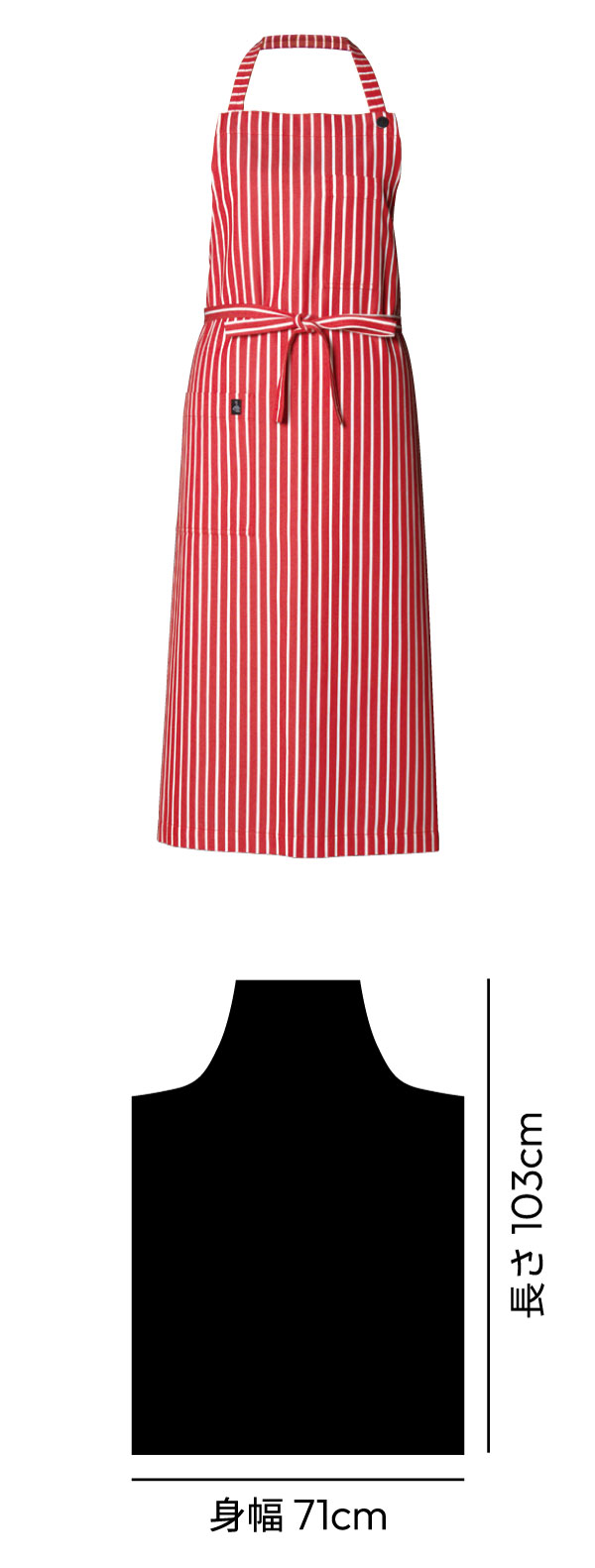 フルエプロンの肩ヒモの長さは三段階に調節可能