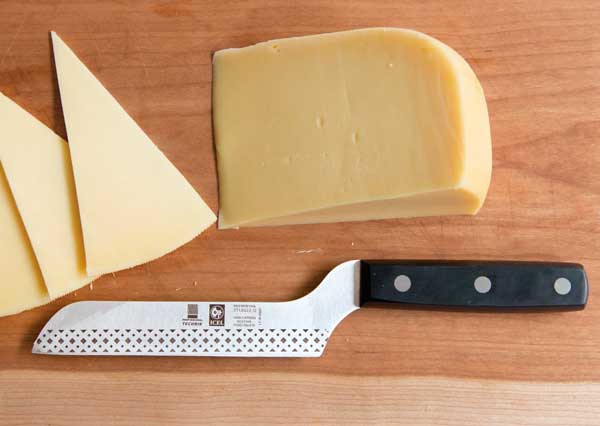 穴があいているため、チェダーなどのくっつきやすいチーズも程よく離れ、ストレスを感じることなく切り分けのできるナイフです。