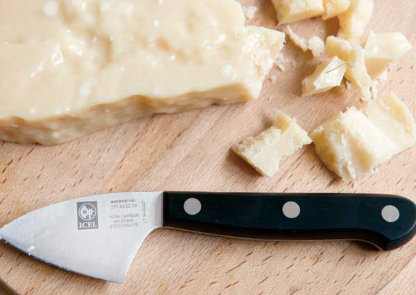 パルミジャーノなどのハードチーズをブロックタイプに切る他、薄くスライスすることも可能です。