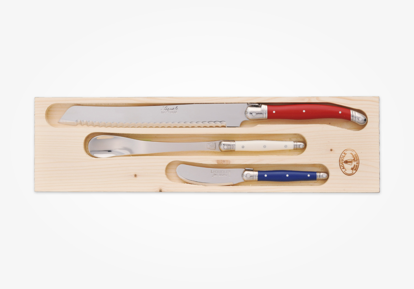 バターナイフ、ジャムスプーン、ブレッドナイフを組み合わせたパン好きが喜ぶ人気のセット。