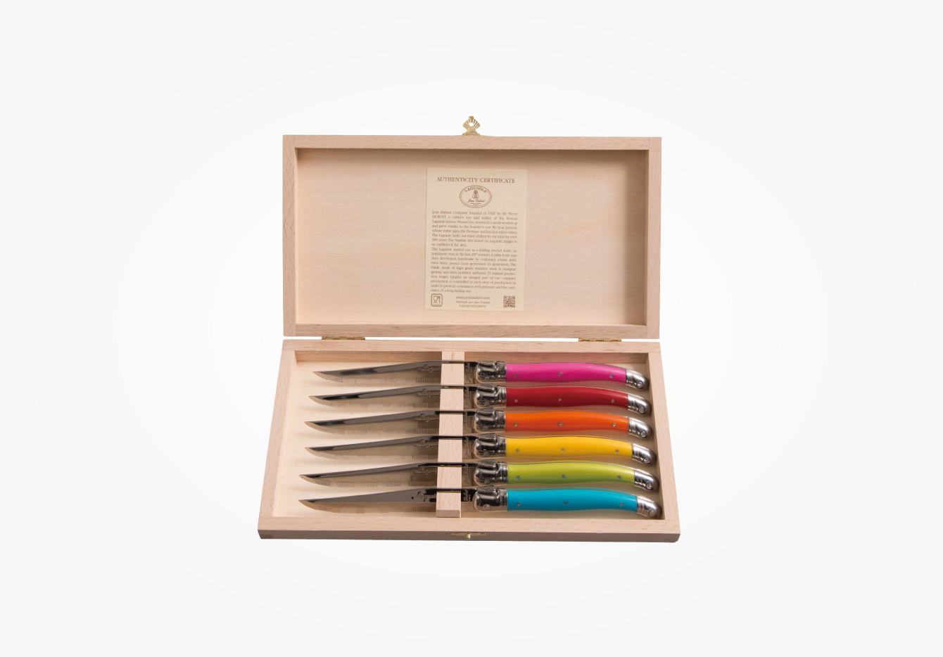 ステーキナイフを6本収納できるビーチウッド素材のボックスです。 大切な方へのギフトや、レストランなどでお客様にお好きなカラーを選んでいただくサービスに最適です。 ※ボックスにナイフは含まれておりません。
