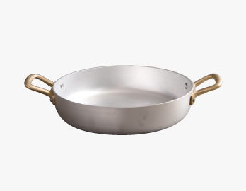 イタリアの伝統的なトラットリアなどで見かけるローストパン。アルミの熱伝導性を利用してフリッタータなどのスピーディに仕上げる料理に使われます。直火、オーブンでの調理が可能でそのまま食卓へサービスするのもイタリア式。 別売りで専用のフタもございます。