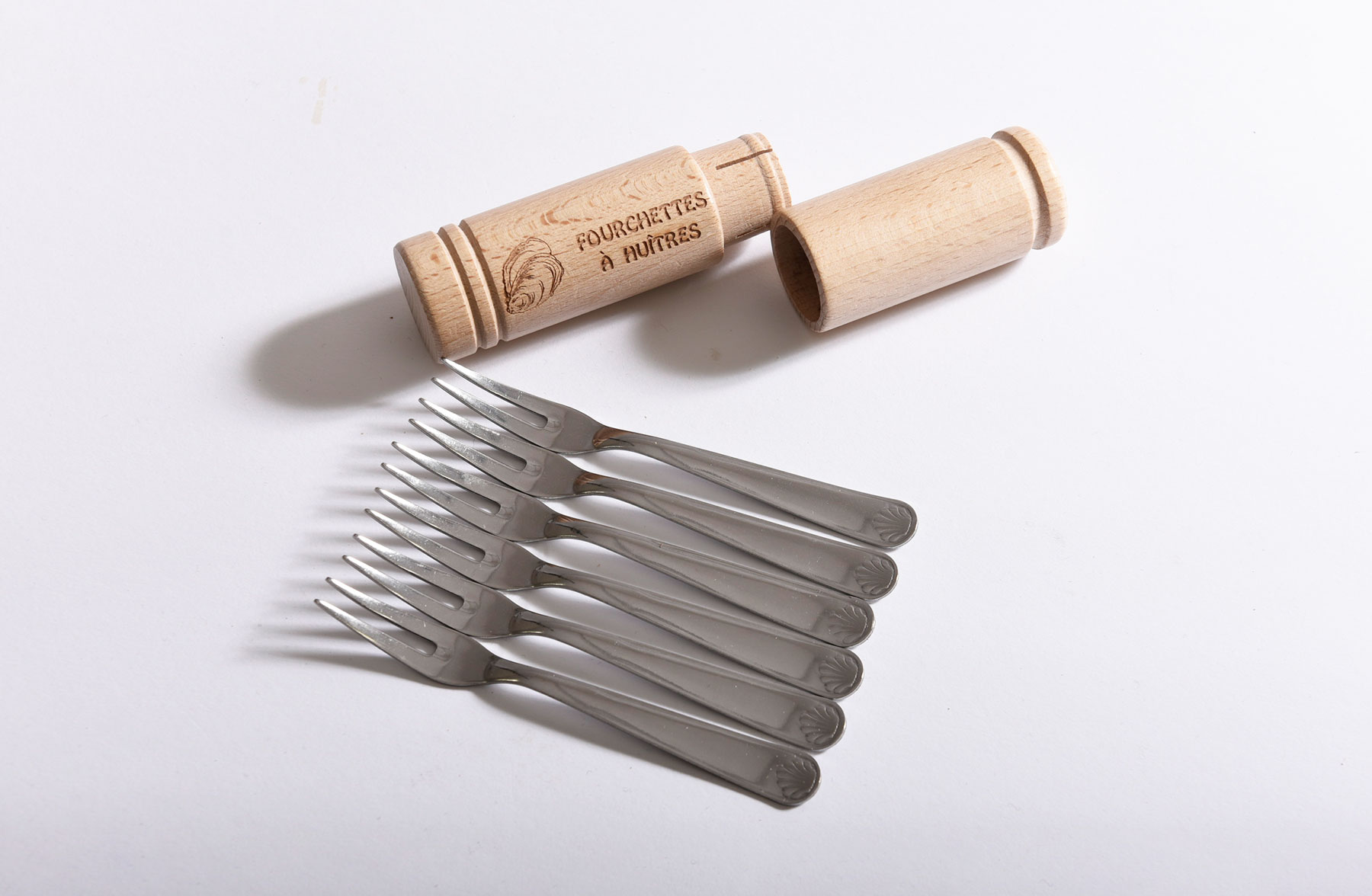 柄の端にシェルのマークが型どられたノスタルジックなフォーク。牡蠣やシュリンプカクテルなどのシーフードやバーニャカウダなどにも。木製のケース入りでピクニックやアウトドアに便利です。