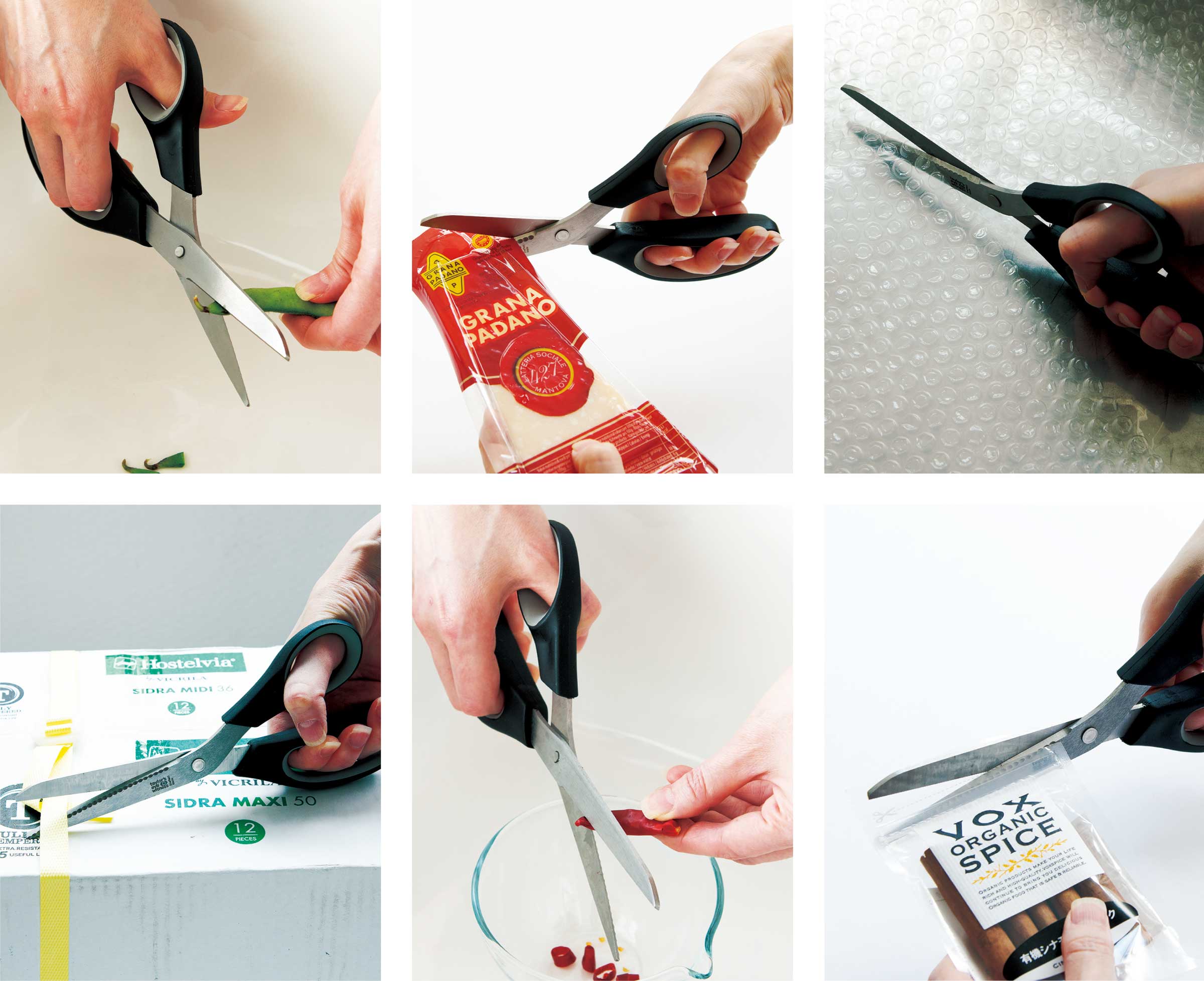 料理の下ごしらえ、パスタやコーヒー等の食品パッケージを開封するなどキッチンでの作業の他、その他の家事にも重宝します。