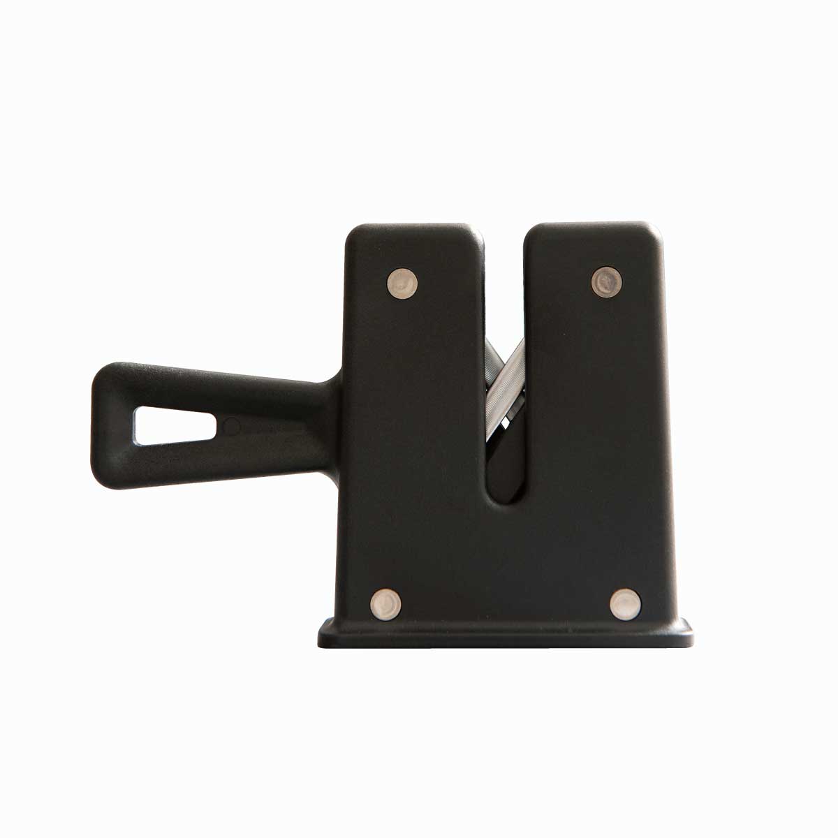 取っ手を握り、V字に重なった2本のスティールの上にナイフの刃を乗せて、前後に4~5回スライドさせるだけ。