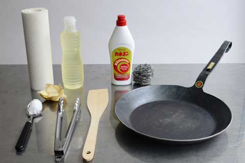 クリームクレンザー/金たわし/キッチンペーパー/サラダ油/塩/じゃがいもの皮/ターナー/トング