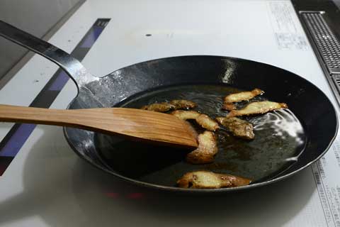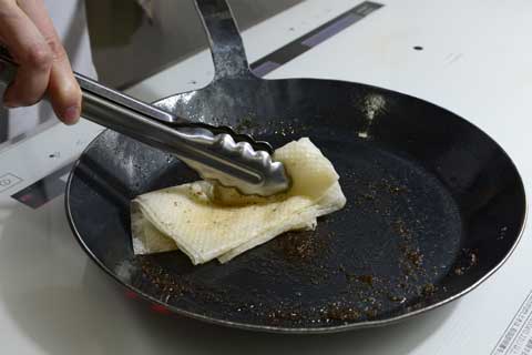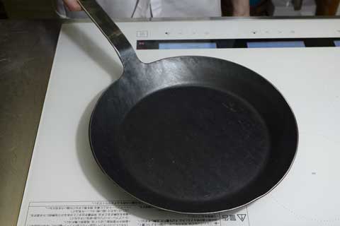 さらに火にかけて水分を完全に飛ばし、焼き慣らしが完成です。 このあとすぐに調理が始められます。