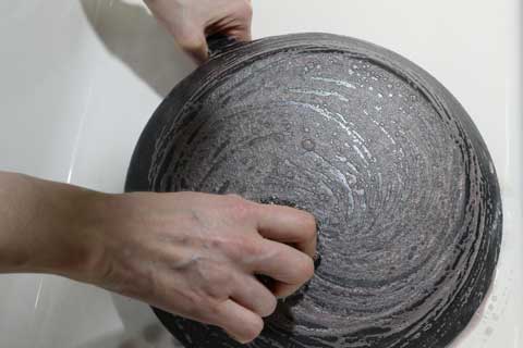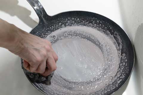 ざっと水で流してからクリームクレンザーと金たわしで洗います。